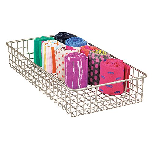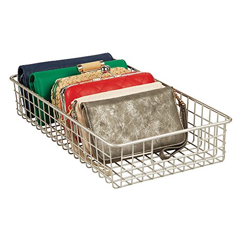 mDesign Wire Closet Storage Basket for Clutch Purses, Shoes, Accessories - Wide, Satin