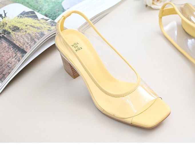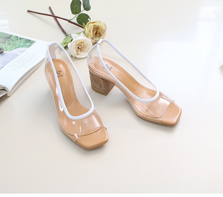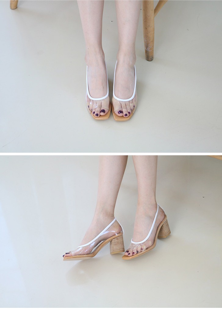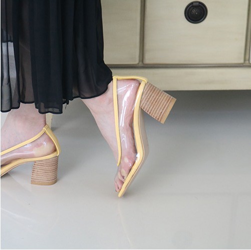 商品名:パンプス レディース クリアパンプス 太ヒール チャンキーヒール オープントゥ 2018 夏 ファッション 靴 婦人靴