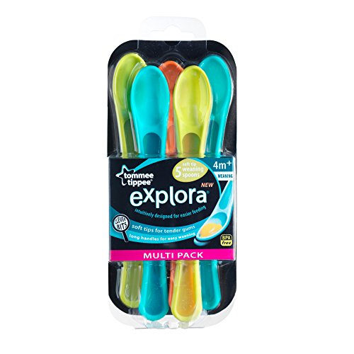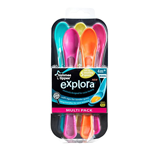 -. Binding : Baby Product -. Brand : Tommee Tippee -. Feature : Spoons perfect for making the transition into solids / Spoons have a shallow base for tiny mouths and long handles for reaching into the bottom of food jars / Soft tips for tender gums, suitable for babies aged 4 months / Dishwasher, microwave and sterilizer safe / Always BPA and phthalate free for ultimate reassurance -. Label : Tommee Tippee -. Manufacturer : Tommee Tippee -. ProductGroup : Baby Product -. ProductTypeName : BABY_PRODUCT -. Publisher : Tommee Tippee -. Studio : Tommee Tippee -. Title : Tommee Tippee Explora Weaning Spoons