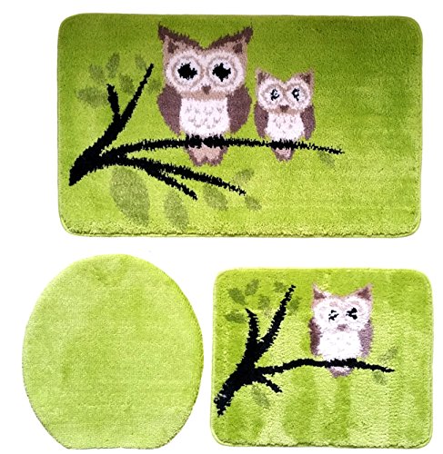 -. Title : 3- Teilige Badgarnitur mit Eulen Motiv, 60cm x 100cm (große Matte) kiwi grün für Hänge-WC