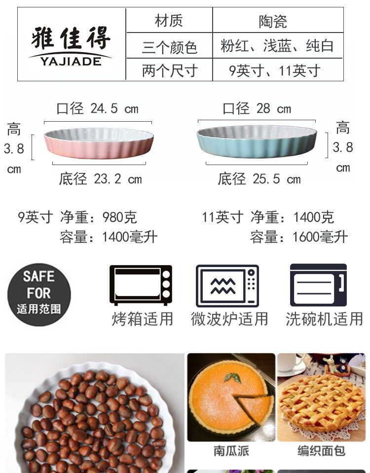 微波炉专用陶瓷烤盘 芝士焗饭盘家用烤盘 烤箱烘焙加厚耐热披萨盘