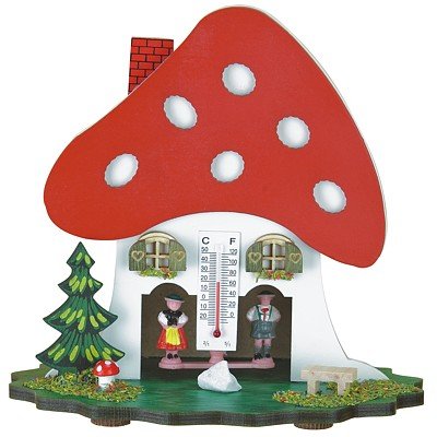 Colour: Coloured Height: 15 cm/6 inch The weather house is made of wood. This is how a weather house works: There is a gut string inside, which reacts to all changes in the air humidity. Depending on whether the air is dry or humid, the gut string changes its position and twists more or less, so that the female turns outside when it is dry and the male, when it is humid.