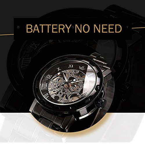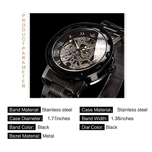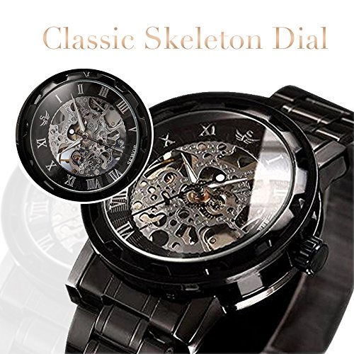 LUXURY SKELETON STYLE - Classic skeleton portion, black and smooth polished stainless steel case, affordable business casual dress watch with roman numeral time mark,double locking fold over clasp