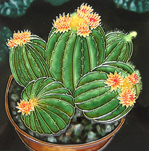 Continental Art Center BD-2339 Art Tile 8x8 Art Tile-Cactus with Yellow Flowers