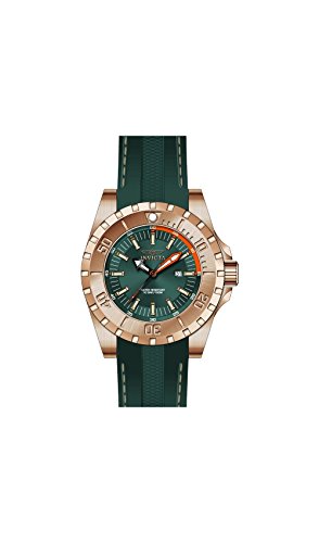 The prolific Pro Diver collection from Invicta offers smooth and stylish watches for the gentleman in need of an every day, versatile accessory that can complement any wardrobe for any situation. This brilliant polyurethane and rose-tone 18K gold plated stainless steel design is no different with its sleek color scheme complemented by a sporty unidirectional bezel. Robust in size with a 52 mm diameter, this handsome watch is perfect to add a touch of daring style to any weekend outfit. This website is an authorized reseller of Invicta and each piece comes with the manufacturer warranty.Feature