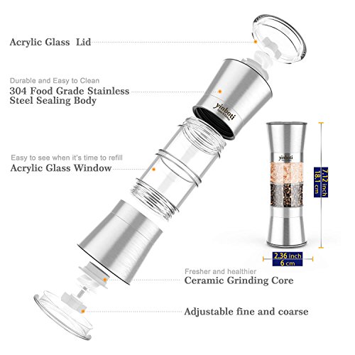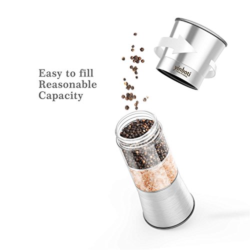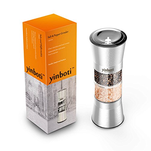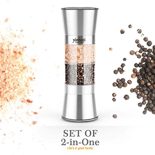 yinboti Pepper Grinder Salt Grinder Set Manual Mills with Stainless Steel, 2-in-1 Combo (No Spices Include)
