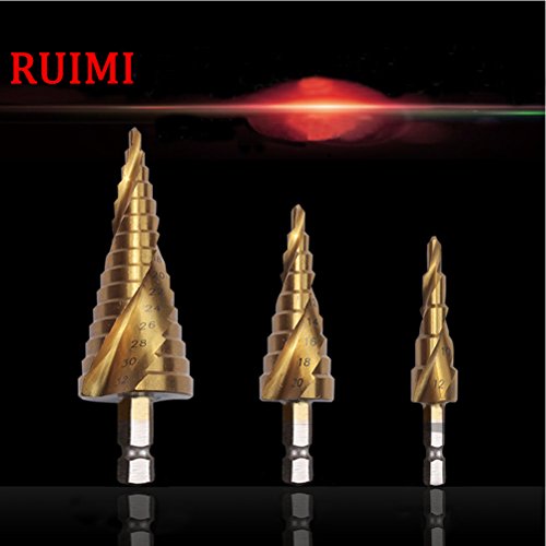 RUIMI Titanium Step Drill Bit Spiral Metric Sizes 3Pcs