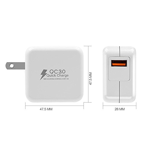 RND QC3.0 Quick Charge compatible USB AC / Wall Charger (QC2.0 Compatible) with Foldable Plug Galaxy (S8, S8 Plus, S7, S6, Edge), Note (5, 4), LG (G6, G5, V10), HTC 10 and More (white)