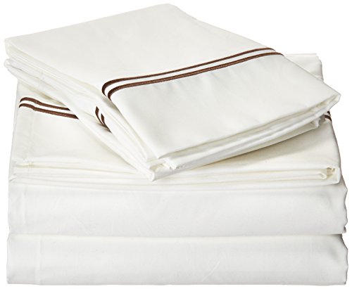 Elle 1200 Thread Count Cotton-Rich Embroidery Sheet Set, Full, White/Chocolate