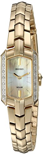 Web exclusive! Complement your elegant blouses and dresses with this attractive Tressia Solar watch from Seiko. Embellished with sparkling diamond accents and a luxurious mother of pearl inlay, this timepiece will add a high-class flair to any evening outfit. It's also solar-powered and water-resistant up to 30 meters, so can easily and safely view the time at night or if you accidentally get caught in a downpour.Feature