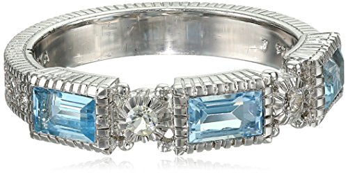 -. Feature : Band ring in textured sterling silver featuring bezel-set blue topaz baguettes and white sapphire rounds / Items containing natural stones may have slight variances in size, shape, and color. / Imported