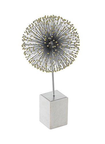 Deco 79 72959 Iron Star Ball Sculpture with Tips Marble Base, White/Silver/Gold