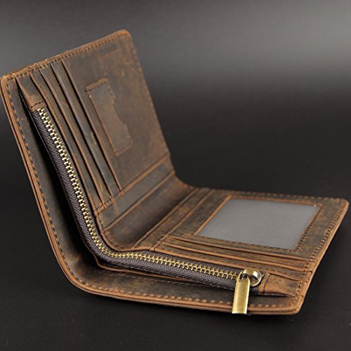 -. Binding : Apparel -. Brand : Dopobo -. Department : mens -. Feature : Front, simple and elegant style, with upscale crazy horse hide, show the charm of avant-garde and fashion. / Back, naturally pure design, is the first choice for business people. / High quality crazy horse leather, soft and comfortable. / Retro metal zipper, never rust, smooth and easy to pull, solid and durable. / Designed a transparent window, not only can put photos, but also can put ID cards, etc. -. PackageQuantity : 1 -. ProductGroup : Apparel -. ProductTypeName : ACCESSORY -. Size : 3.93*4.72*0.59 inches -. Title : Dopobo® Mens Wallat - Crazy Horse Leather Vintage Retro Bifold Wallet Purse with Credit Card Slots, ID Window and Coin Zipper Pocket for Business & Casual
