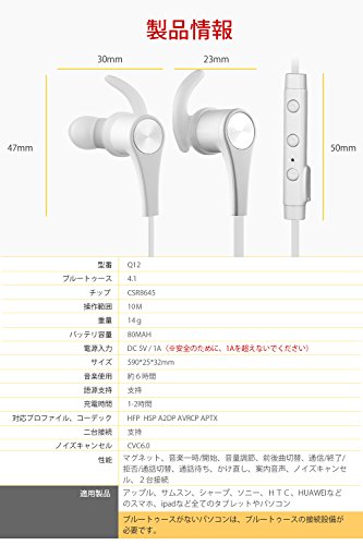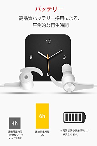 ※Bluetooth 4.1がついており、待機時には圧倒的な低消費電力で、180時間のスタンバイ状態を実現。わずか1~2時間の充電で、6時間の音楽再生が可能です。