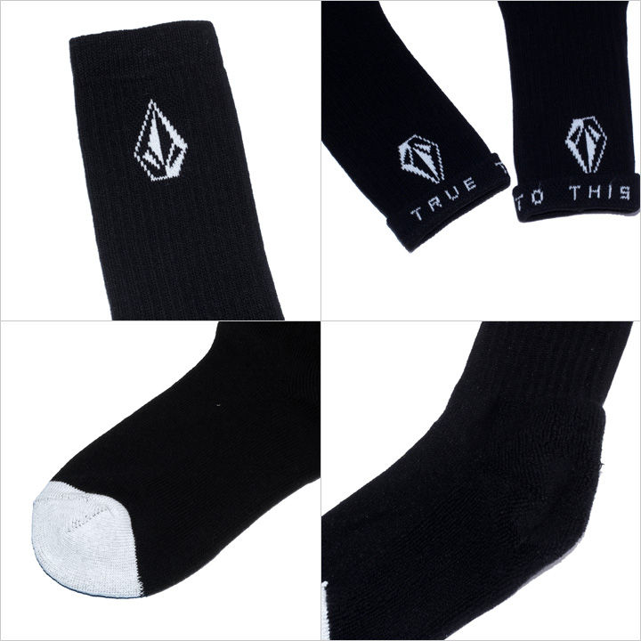 地厚で耐久性のある仕様になっているハイソックス。 履き口はしっかりとしたホールド感のあるリブで、リブ裏にはメッセージが入っています。 ブラック x ホワイトの万能なカラーリングとデザインなので、二足買いやプレゼントにもオススメです。