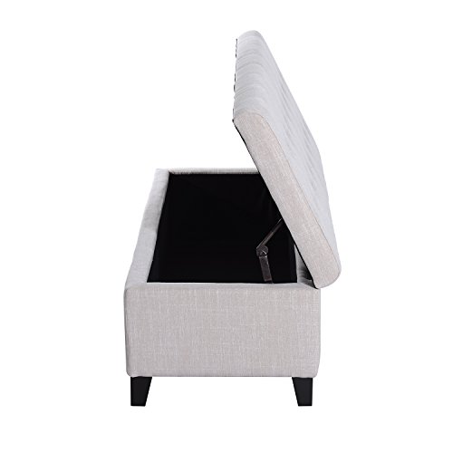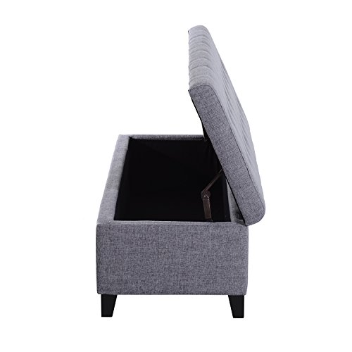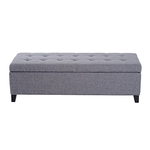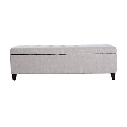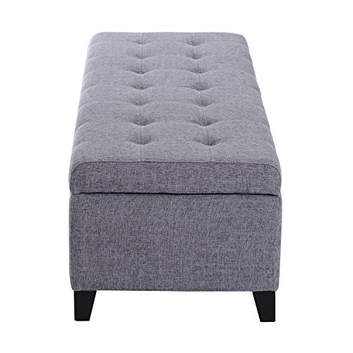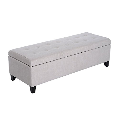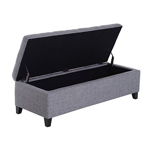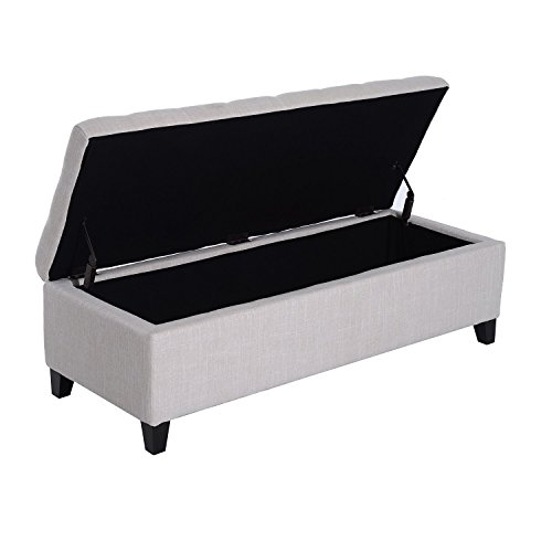 -. Brand : HOMCOM -. Feature : Storage ottoman bench available in a variety of contemporary colors to choose from / Tufted cover designed for style and comfort as an elegant sitting bench / Hinged top opens to reveal ample storage space for blankets, pillows, books, games and more / Raise wood legs support the durable wooden frame and padded upholstery cushioning / Overall Dimensions: 50.5"L x 18.5"W x 16"H; Inner Storage: 46.5"L x 15.25"D x 8.75"H -. Label : HomCom -. Manufacturer : HomCom -. ProductGroup : Furniture -. ProductTypeName : HOME_FURNITURE_AND_DECOR -. Publisher : HomCom -. Studio : HomCom -. Title : HomCom 51” Fabric Tufted Storage Ottoman Bench