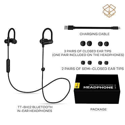 -. Title : TaoTronics Bluetooth Headphones, Wireless In-Ear Earbuds Sports Earphones with Bulit in Mic (Secure Ear Hooks Design, 8 Hours Play Time)
