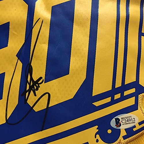 Autographed/Signed Stephen Steph Curry Golden State Warriors Yellow "The City" Basketball Jersey Beckett BAS COA Holo Only