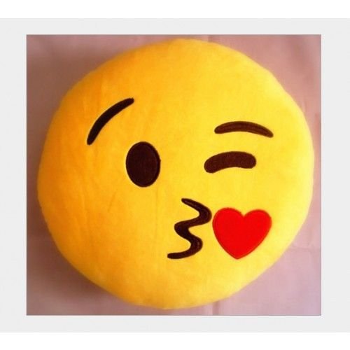 (Children's Pillows)/Bedding Bath/Bedding/DIRECT FROM USA/Cute Emoji Emoticon Yellow Round Cushion Pillow Stuffed Plush Soft Toy (Throwing kiss)