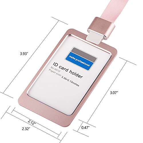 -. Feature : Inner Dimension: 3.35"L x 2.13"W;Lanyard Dimension:17.7"L x 0.59"W, 35.4"full round length / Double sided visual of high transparency ID window / Detachable Lanyard with environmental protection material hook / 2 type: Vertical and Horizontal; 4 color: golden,silver,gray,rose gold / Exquisite workmanship; Contracted and not simple