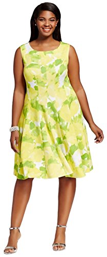Sandra Darren Women's Plus-Size Multi Colored Fit and Flare Scuba Dress