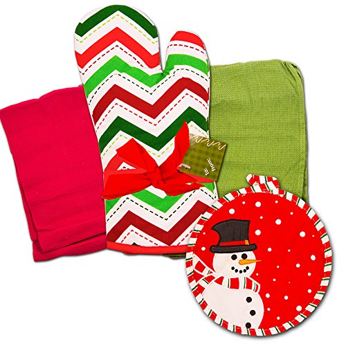 - Christmas Kitchen Towels Set -- Holiday Christmas Oven Mitt with Festive Dish Towels (Christmas Kitchen Decorations) (Holiday Set).