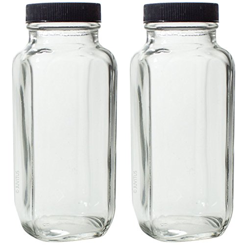 8 oz Clear Thick Plated Glass French Square Empty Bottle Jar with Lid (2 Pack) Perfect for Home, Travel, Juicing, Kombucha