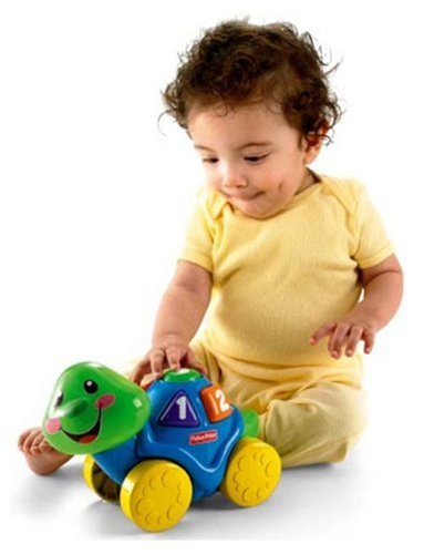 This friendly, push-pal turtle makes learning numbers and shapes lots of fun for baby. Just press buttons to hear 1-2-3's, shapes and fun sounds. A delightful sing-along song plays as baby rolls him along or touches the light-up musical button. Roll, laugh and play the day away!