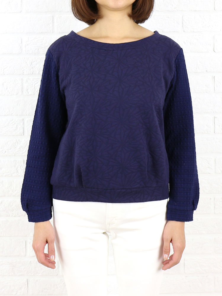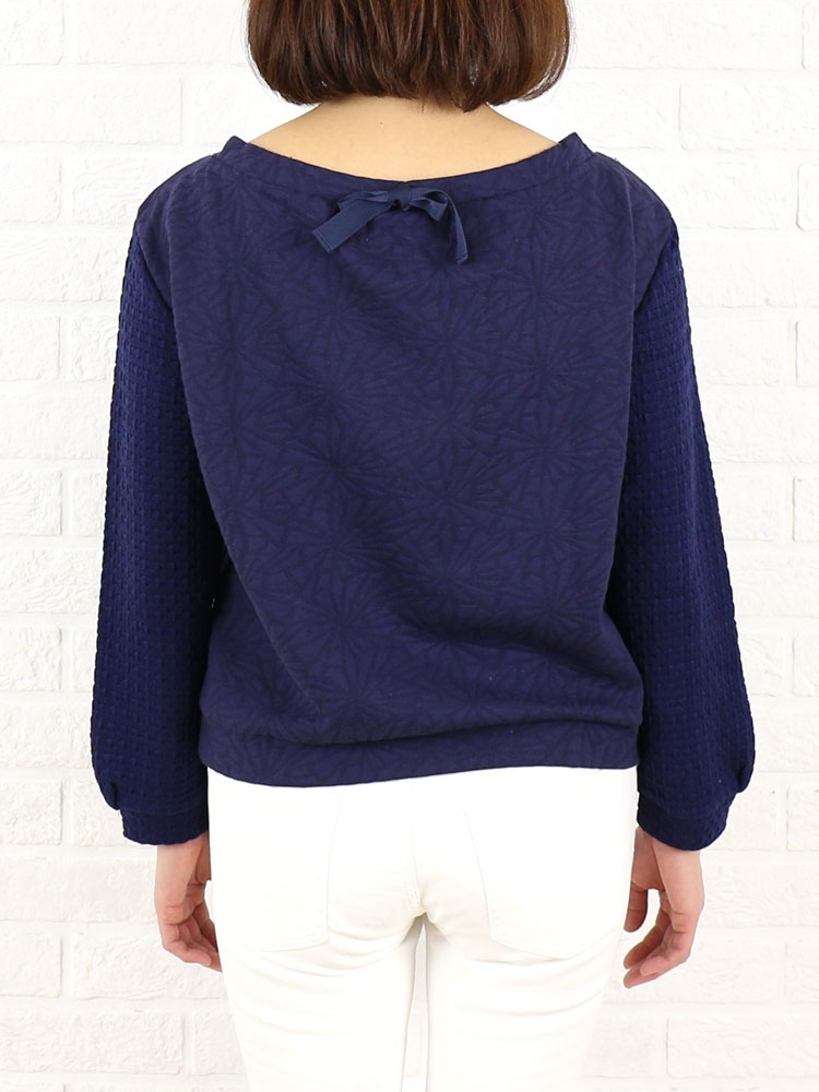 ISATO DESIGN WORKS(イサトデザインワークス) ポリエステルコットン 切替 リボン付き ショート プルオーバー・ILT-27801