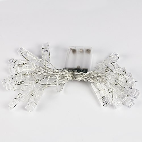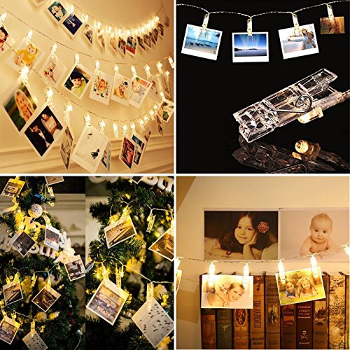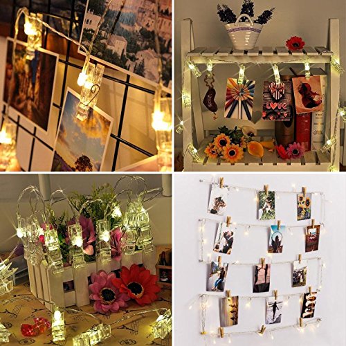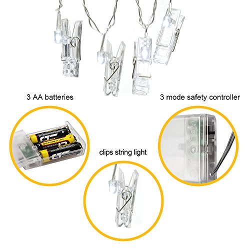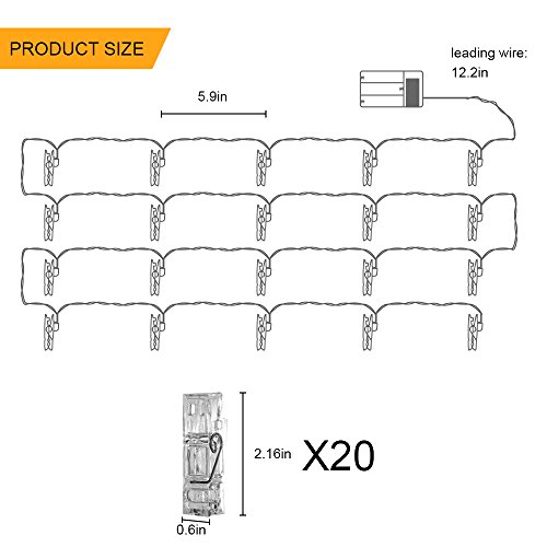 20 LED Photo Clips String Lights - Fairy lights 3 Modes 9.8 Feet Battery Powered , Wedding Party Home Decor Christmas Lights for Hanging Photos, Cards and Artwork(Warm White)