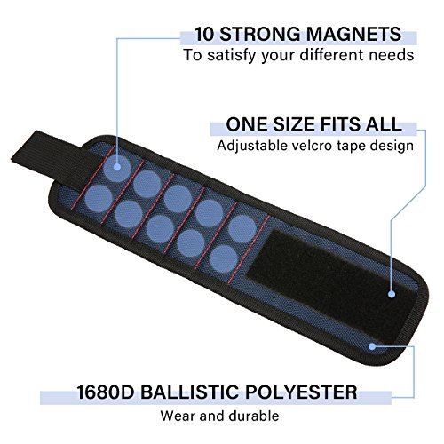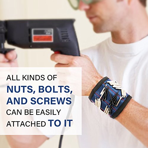 SAFETYON Magnetic Wristband with Strong Magnets and Adjustable Strap for Holding Screws Nails Bolts Drill Bits DIY Magnet Wrisband Tool Belt for Handyman Men Women Dark Blue