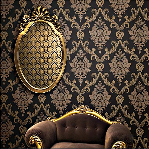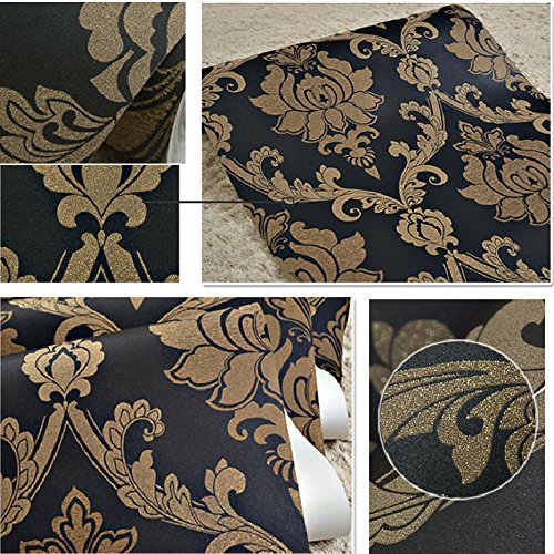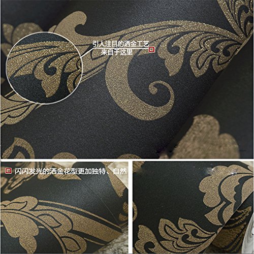 -. Title : QIHANG European style Gold - Flecked Process Damask Non-woven Wallpaper Black Colors 0.53m(1.73') x 10m(32.8')=5.3㎡(57sqft)