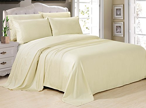 Swift Home Deluxe Resort-Style Silky Soft Bamboo Cotton Bedding Sheet Set - Queen, Ivory
