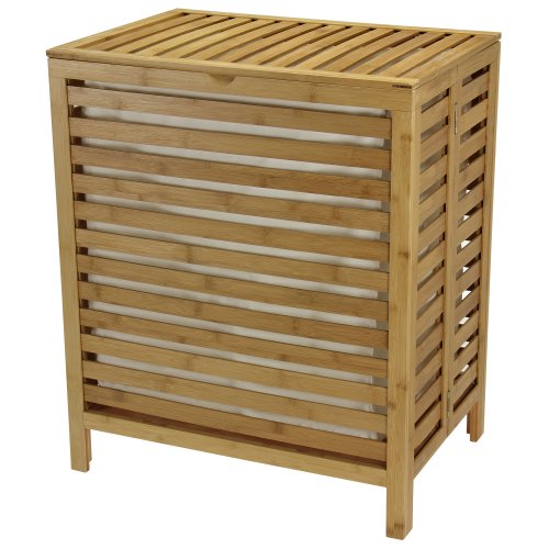 -. Title : Household Essentials Natural Bamboo Open Slats Laundry Hamper with Hinged Lid and Cotton Liner