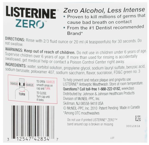 Listerine Zero Mouthwash, Clean Mint, 50.7-Ounce (1.5 L)