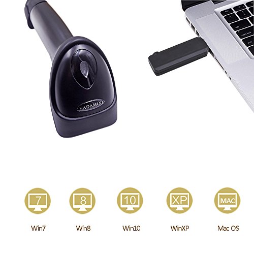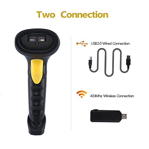 NADAMOO 2D Wireless Barcode Scanner (2-in-1 433Mhz wireless & USB2.0 Wired) 1D QR PDF417 Data Matrix Bar Code Scanner Cordless CCD Image Barcode Reader for Mobile Payment Computer Screen