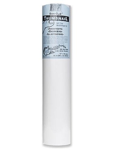 Borden & Riley Sun-Glo Thumbnail Sketch Paper Rolls white 8 lb. 12 in. x 50 yd. roll