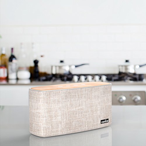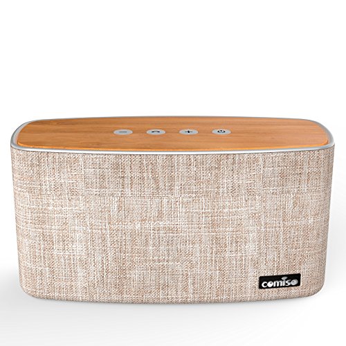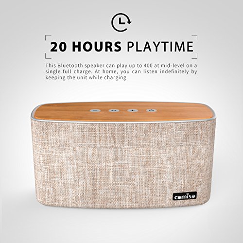 -. Title : COMISO 30W Bluetooth Speakers with Super Bass, Bamboo Wood Home Speaker with Subwoofer, Up to 20 Hours Playtime
