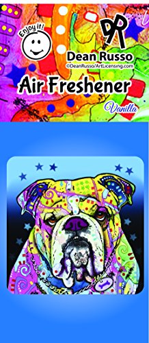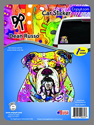 Show your love for pets wherever you go with Dean Russo car stickers and air fresheners from Enjoy It. 2-pack includes 1 sticker and 1 air freshener. Each car sticker decal is made from outdoor rated vinyl, ink and adhesive, making it last for years in all temperatures and conditions. Apply durable sticker decal to car windows, bumpers, regular house windows, mirrors, laptops, or paper for scrapbooking and crafts. This automotive grade adhesive decal will withstand sun, rain, snow, sleet and windshield wipers. Easy to apply and remove. Simply clean the area where you plan to place the sticker. Make sure there is no residue and that the window is completely dry after cleaning. Carefully peel off the sticker from the sheet. Apply the sticker to the location from the center of the sticker outward, smoothing out any bumps or bubbles that you notice from the center out to the edges. Each Dean Russo high quality air freshener features a colorful pup that will look great hanging in your vehicle, home or office. Vanilla scent will leave your car smelling fresh and new. Scent lasts 30-60 days. Air freshener measures 3 x 3 inches. Both items are made in the USA. A great gift for anyone who loves animals!Feature