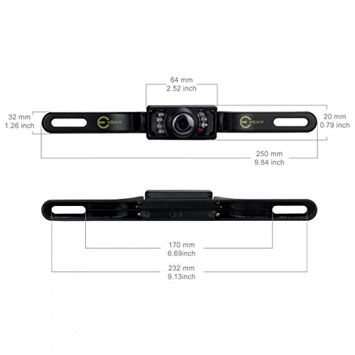 Car Rear View Camera, Esky EC135-05 Waterproof High Definition Color License Plate Vehicle Backup Camera with 135 Degree Viewing Angle, and 7 High Brightness Infrared Night Vision LED