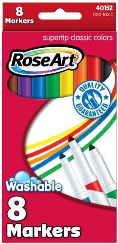 Studio : Mattel Publisher : Mattel Binding : Office Product Product Description These Classic Colored RoseArt Markers are non-toxic, with a SUPER tip for fine, detailed drawing and writing! The washable formula allows the ink to wash off of most household surfaces, fabrics and skin with mild soap and warm water. Vibrant colors lay down lots of great color without bleeding through your page! They are great for all of your child's coloring needs and are ideal for school or home use. There are 8 colors per pack. Ideal for children ages 3 and up. RoseArt inspires creativity through fun and easy-to-use arts and crafts products sold at family-friendly values. 0