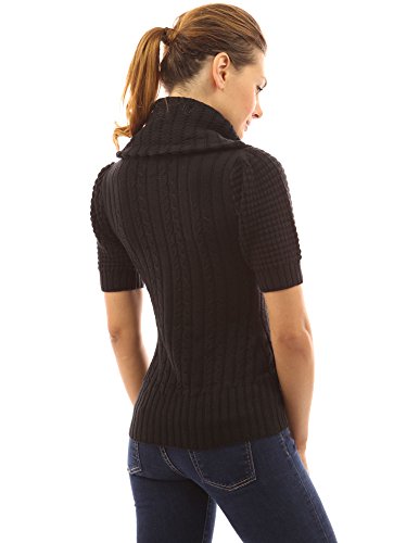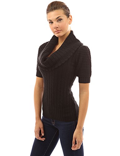 PattyBoutik Cotton Blend Cowl Neck Puff Short Sleeve Ribbed Cable Knit Sweater Pullover Top. Model in pictures is 5 feet 8 inches (173cm) tall.