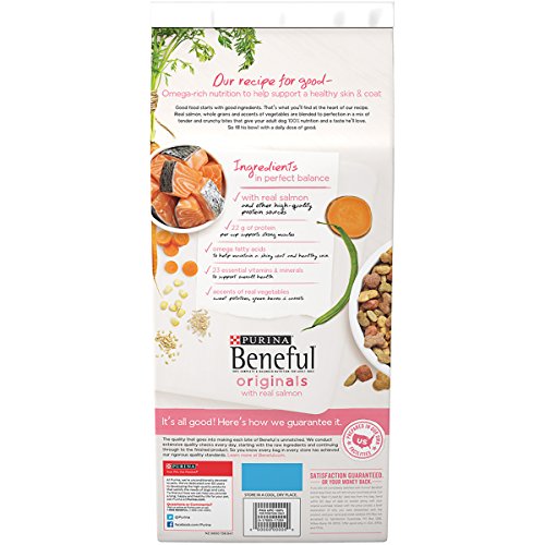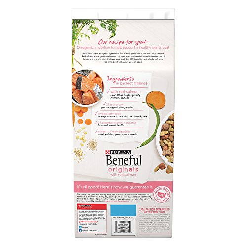 -. Feature : One (1) 3.5 lb. Bag - Purina Beneful Originals With Real Salmon Dry Dog Food / Made with real salmon / Accented with real sweet potatoes, green beans & carrots for wholesome goodness / Omega fatty acids to help maintain a shiny coat / 100% complete and balanced nutrition for adult dogs