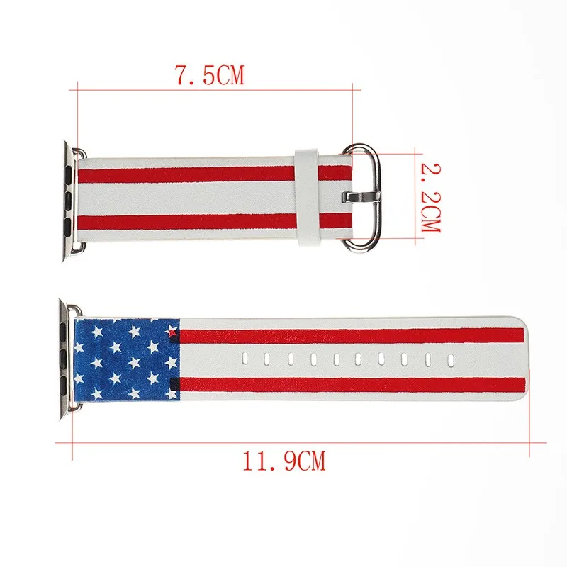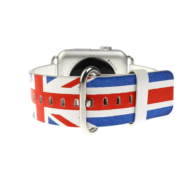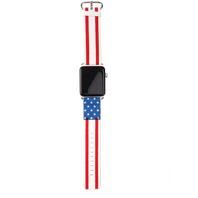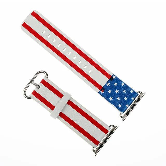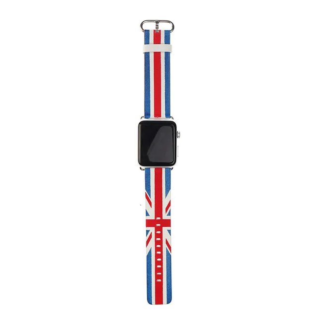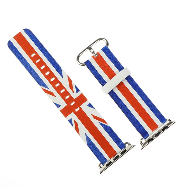 Fohuas 정품 가죽 루프 apple watch 밴드 42 미리메터 iwatch 가죽 스트랩 38 미리메터 팔찌 플래그 패턴 어댑터 커넥터