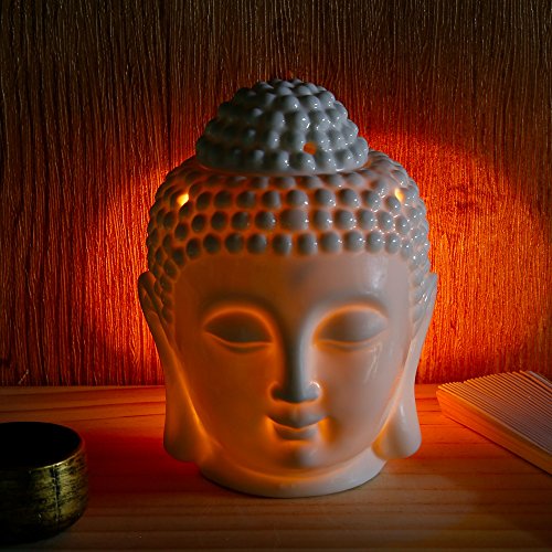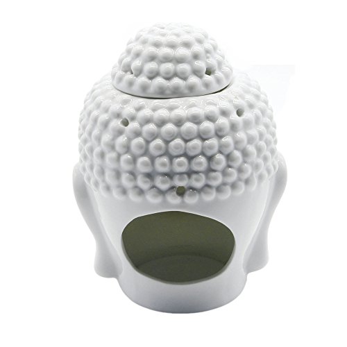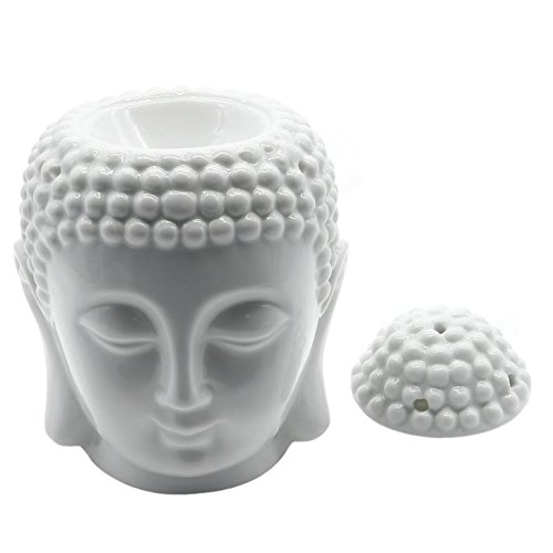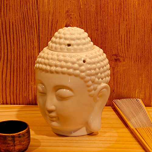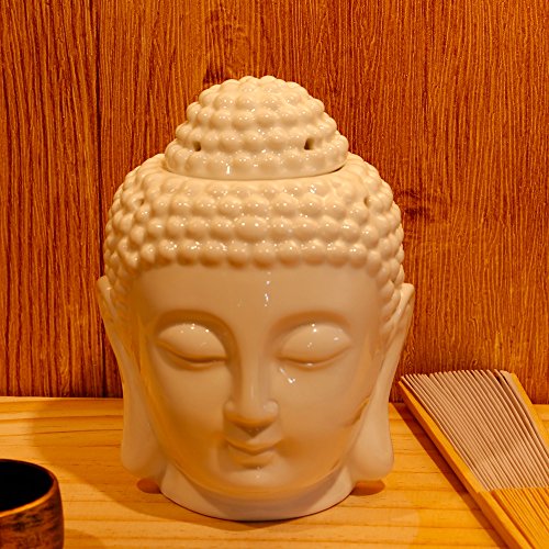 Omonic Porcelain Zen Garden Yoga Meditation White Thai Buddha Head Statue Essential Oil Burner Aromatherapy Diffuser Home Decor (White)
