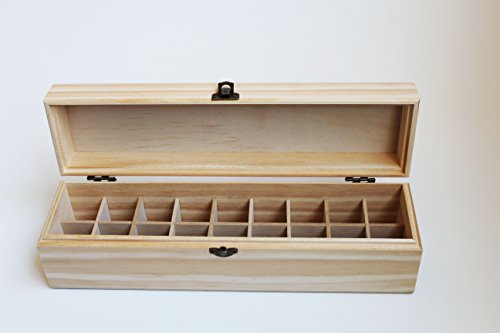 ► QUALITY CRAFTSMANSHIP & VERSATILITY MAKES THIS BOX THE MOST POPULAR ESSENTIAL OIL STORAGE OPTION. Crafted from natural pine wood with strong dividers & beautiful natural finish. No logos on the top or lid means box can be stained, painted, or customized to your liking.