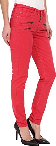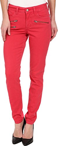 Five-pocket pant has a higher rise and skinny leg. Lift Tuck Technology® lifts and shapes curves so you instantly appear one size smaller. Patented crisscross panel trims the tummy. Faux front zips for a moto-inspired look. Tonal topstitching. Belt loop waistband. Zipper fly and button closure. 97% cotton, 3% spandex. Machine wash cold, line dry. Made in the U.S.A.