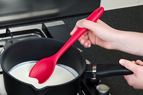 NO MORE UNHYGIENIC UTENSILS – This premium solid-silicone mixing spoon won’t harbor bacteria in hidden crevices, or let you down by melting or warping. The smooth edges won’t scratch non-stick pans, and it is perfect for mixing and stirring many kinds of hot and cold food
