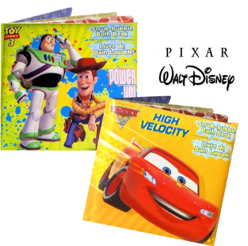 Studio : Disney Pixar Publisher : Disney Pixar Binding : Baby Product Product Description Set of two Disney Pixar bath books; Toy Story 3, and Cars 2. Bath time has never been more fun than with these Disney Pixar bath books. Favorite characters of Toy Story 3 and Cars 2 are colorfully illustrated in these durable, vinyl, and easy-to-grip books! These soft, stain-resistant books for infants and toddlers are perfect for bath time, playtime or anytime! Each book has 8 pages and measures 5 x 5 inches. 0