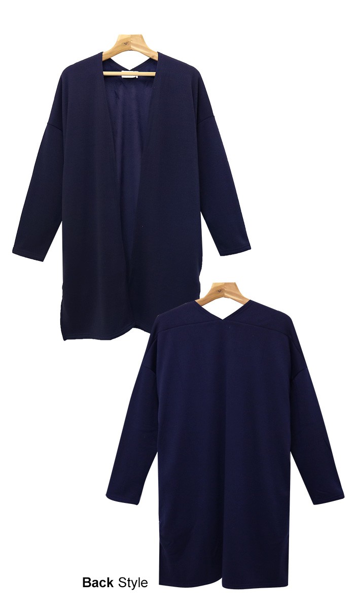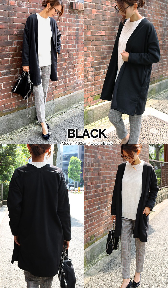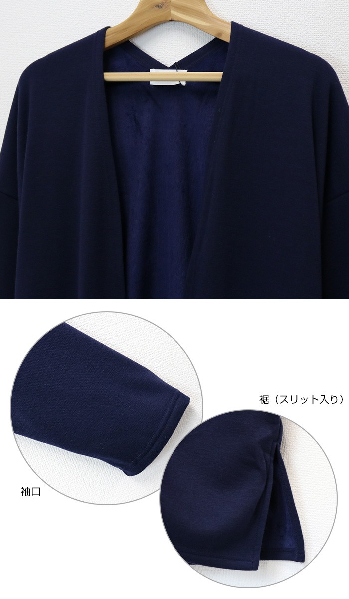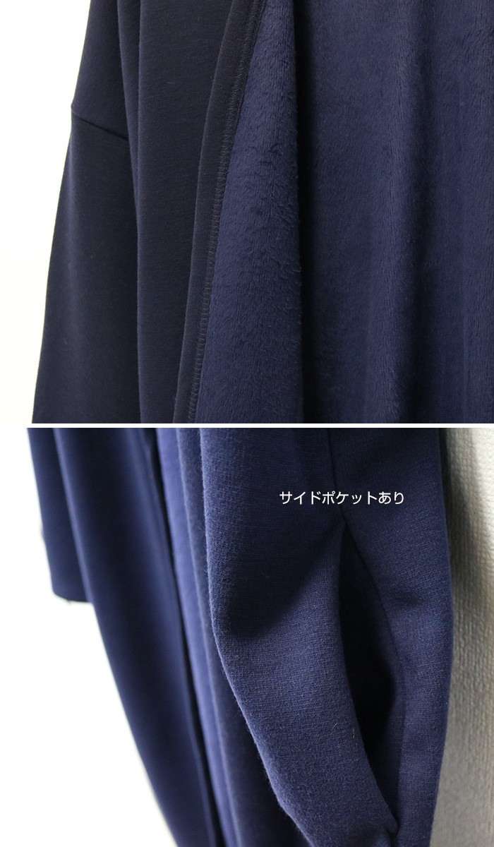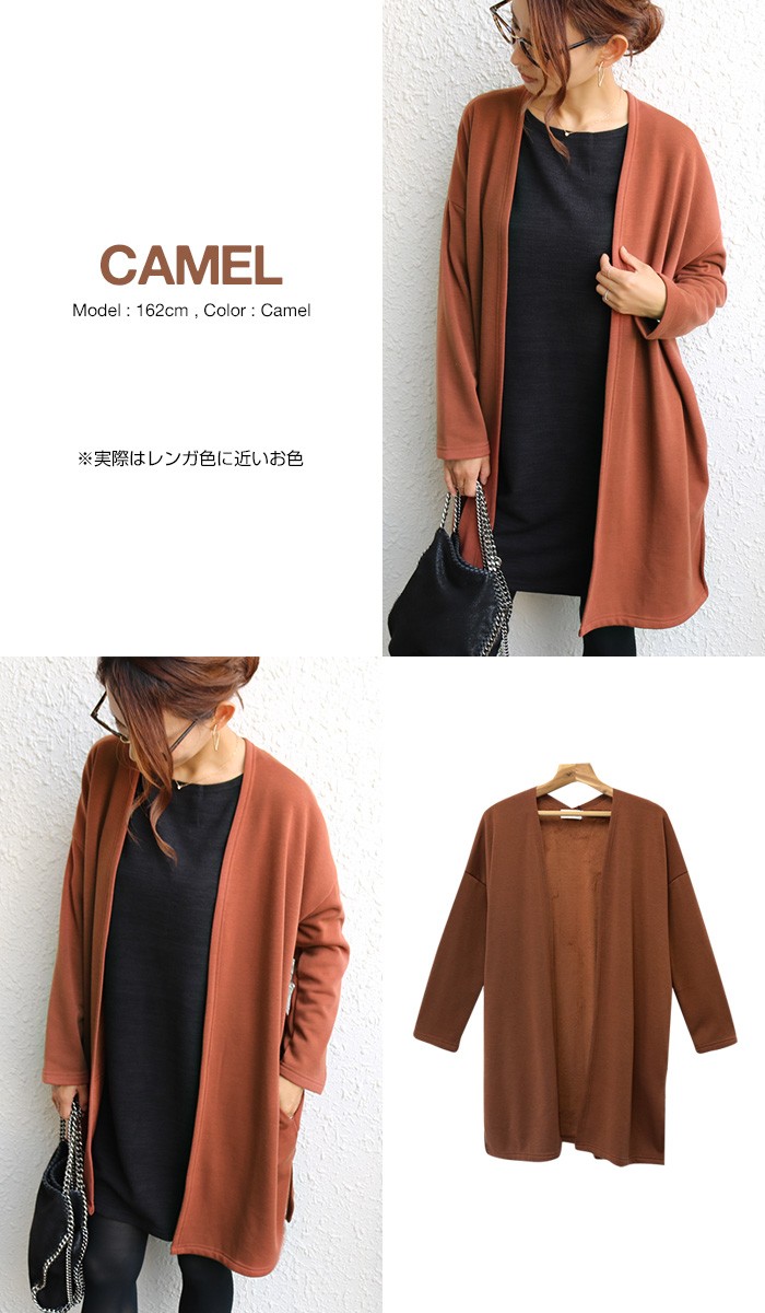 ドロップショルダー、サイドポケットあり。ボタン無しでふわっと軽い1枚です。